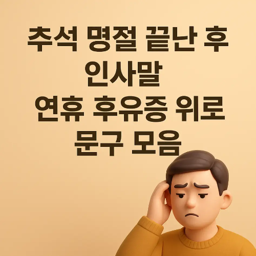 추석 명절 끝난 후 인사말은 단순한 의례가 아니라, 상대방의 안녕을 진심으로 바라는 따뜻한 마음을 전하는 소통의 시작이에요. 이 글에서 준비한 다양한 인사말을 통해, 여러분의 진심이 상대방에게 고스란히 전달되기를 바랍니다. 명절 후유증을 극복하고, 남은 한 해 활기차게 마무리하는 멋진 시간 되세요!